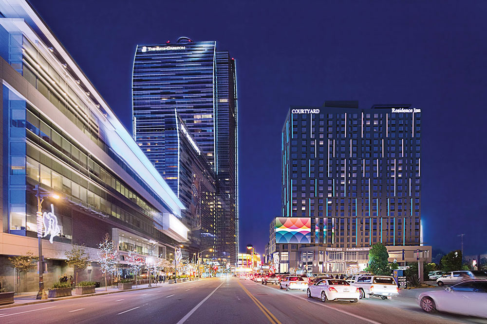The downtown Marriott installation integrates mix-resolution LED systems - one designed to playback artwork and advertising, and a linear light system that reaches upwards onto the building, integrating with the artwork. As Art Director, I was included in the project design from the initial screen concepts in 2011 to the final install in 2014. During that time I assisted in refining the architectural integration of the fixtures and with the creation of original artwork for the screen. One piece I aided in creating was an homage to Blade Runner, an inspiration driving the project. The project was implemented by StandardVision, LLC, a company providing solutions for architectural integration of LED displays.